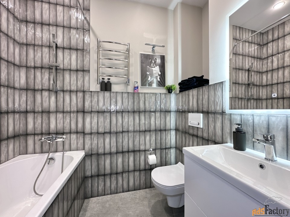 Современный ремонт – квартира полностью готова к проживанию: стильный дизайн, качественная отделка, новая сантехника и техника. Встроенная кухня, удобная планировка и большие окна, наполняющие пространство светом.