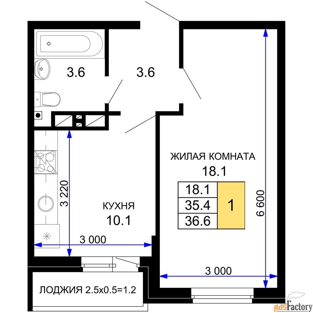 Общая площадь (кв.м) | 36.6 |
