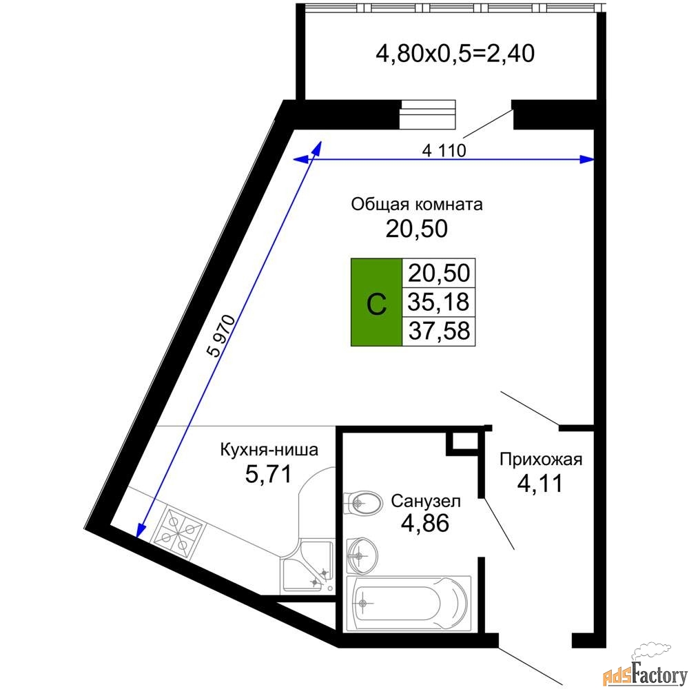 Жилая площадь 20.5 м2, кухня 5.64 м2, предчистовая отделка, комнаты изолированные.