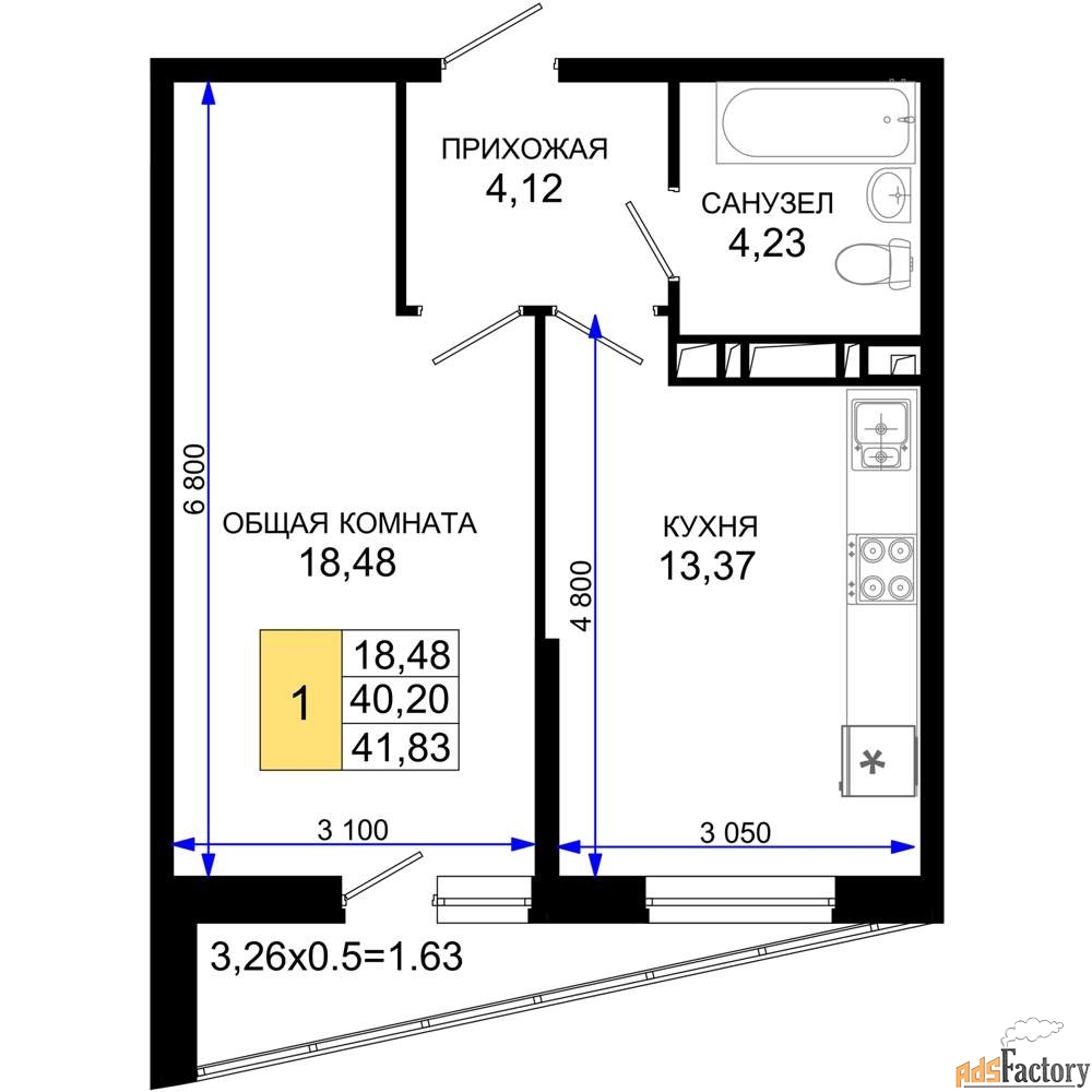 Общая площадь (кв.м) | 41.83 |