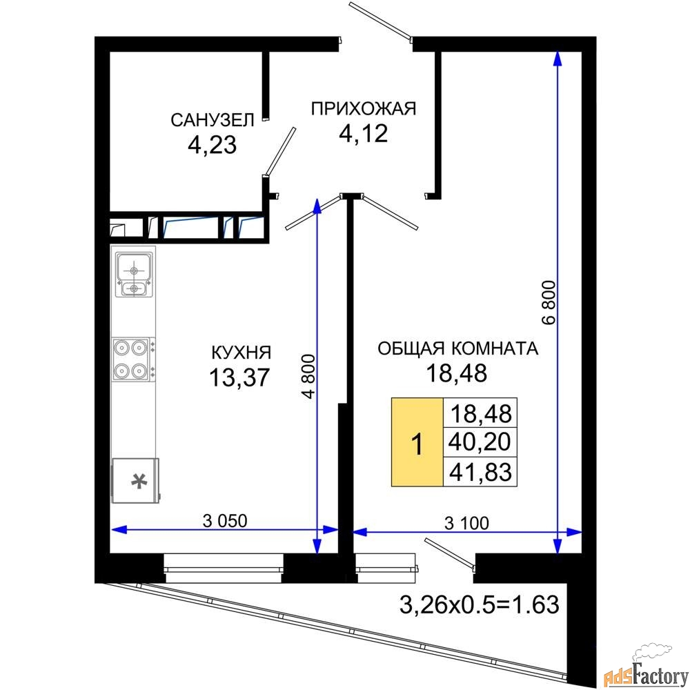 Общая площадь (кв.м) | 41.83 |