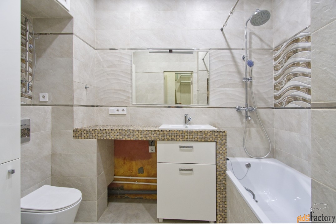 Продаётся уютная 1-комнатная квартира по адресу проспект Дальний, 11 к1. Дом монолитно-кирпичный, 2019 года постройки, ухоженный подъезд, широкие лестничные пролёты, два лифта - пассажирский и грузовой. Квартира расположена на комфортном 3-м этаже 20-этажного дома; планировка продуманная, ремонт свежий и аккуратный, можно заезжать без дополнительных вложений. Общая площадь квартиры составляет 43,4 м² плюс застеклённый и утеплённый балкон около 5 м², который легко использовать как рабочее место, зимний сад или зону отдыха. Кухня правильной квадратной формы площадью 12 м² позволяет удобно разместить и рабочую зону, и полноценную обеденную группу; стены оклеины моющимися обоями, на полу ламинат, натяжной потолок со встроенными светильниками. Кухонный гарнитур с техникой и питьевой фильтр остаются покупателю - готовить сможете с первого дня. Установлена сплит-система. Необычной изюменкой квартиры является выход из кухни по небольшой лестнице на крышу коммерческих помещений, представляющую, по сути, открытую террассу. С управляющей компанией согласована возможность установления там временных бассейной и организации зоны отдыха. Жилая комната имеет площадь 20,4 м² светлая и тихая. Благодаря своей форме и расстановке мебели пространство логично зонировано (гипсокартоновой стеной) на спальную часть и гостевую ТВ-зону. На полу качественный ламинат, на стенах обои, потолок - натяжной, освещение - современные точечные светильники. Установлена сплит-система. Просторная прихожая 5,3 м² позволяет разместить полноценную гардеробную систему и сохраняет порядок в квартире. Санузел площадью 5,6 м²: стены и пол выложены плиткой, установлена современная сантехника и удобная ванна. Есть бойлер и полотенцесушитель. Оборудовано место под стиральную и сушильную машины. Все коммуникации в квартире центральные, установлены счётчики; интернет уже подключён, работают надёжные провайдеры. Коммунальные платежи комфортные: в тёплые месяцы порядка 1 500 руб., зимой до 3 500 руб. Двор зелёный и обжитой: рядом детские и спортивные площадки, ходить далеко не нужно. В шаговой доступности есть всё для повседневной жизни - школы и детские сады, магазины и аптеки, пункты выдачи маркетплейсов, ближайшая поликлиника на улице Атарбекова. Для прогулок рядом уютный парк с фонтаном, а транспортную доступность обеспечивают остановки маршруток, троллейбусов и автобусов - удобно добираться в любой район города. Эта квартира - отличный вариант для первого жилья, для пары или как инвестиция под аренду: современный дом, удачный этаж, уникальная террасса, грамотная планировка, качественный ремонт и почти идеальная инфраструктура вокруг. Звоните и приезжайте на просмотр - Вам понравится атмосфера и насколько продуманно здесь организовано пространство.