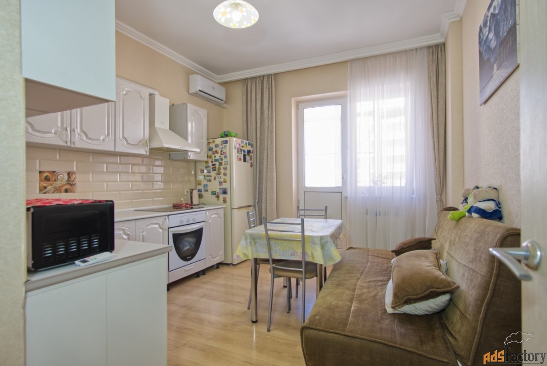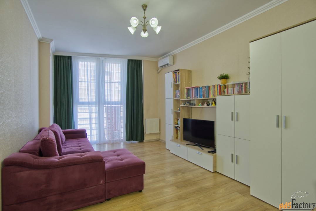 Продаётся светлая и уютная 1-комнатная квартира в престижном районе Краснодара — ул. Архитектора Петина, 18/2. Дом монолитно-кирпичный, 2015 года постройки, ухоженный подъезд, видеодомофон, современный лифт. Квартира площадью 45,1 м² (с балконом — 48,9 м²), на 10 этаже 16-этажного дома. Планировка продуманная: Просторная кухня 13,1 м² правильной формы, с выходом на застеклённый балкон 3,7 м². Остаётся гарнитур, техника, фильтр воды, сплит-система. Жилая комната 20,1 м², прямоугольная, светлая, с мебелью. Просторная прихожая 8,2 м² с зоной под гардероб. Современный совмещённый санузел 3,7 м² с душевой кабиной и плиткой. Все коммуникации центральные, подключён интернет МТС. Чистый двор с детской и спортивной площадкой, всегда есть парковочные места. Соседи спокойные. Развитая инфраструктура — рядом школа, детский сад, магазины, аптеки, поликлиника, ТРЦ, кафе, остановки транспорта. До всего — пешком 5 минут. Квартира полностью готова к проживанию или сдаче в аренду. Без дополнительных вложений. Звоните и записывайтесь на просмотр!