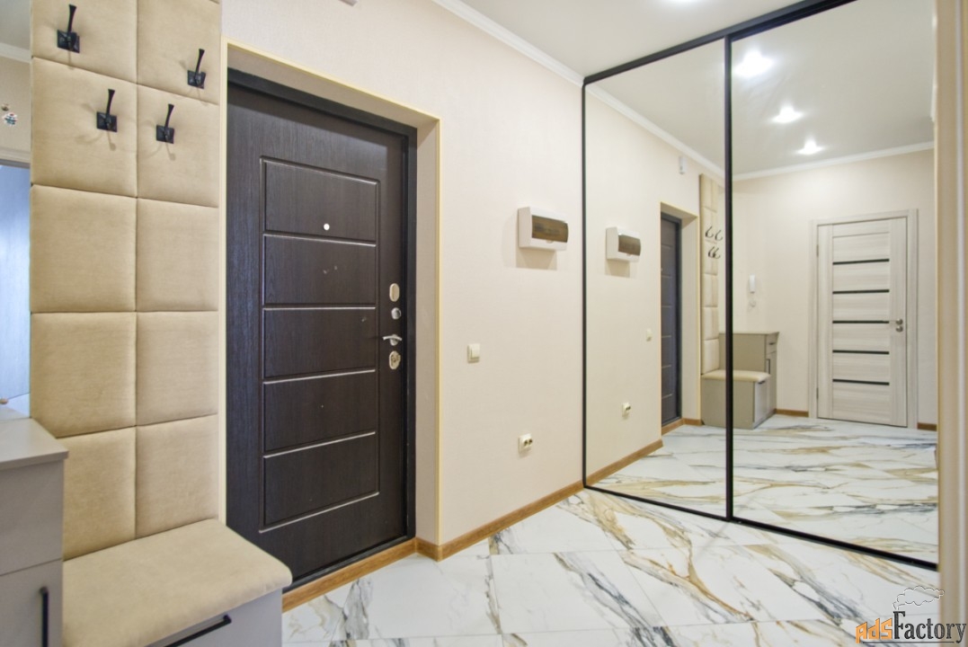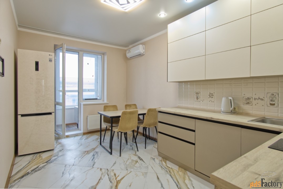 Продаётся стильная и уютная 1-комнатная квартира в современном ЖК «Фамилия», по адресу ул. Старокубанская, 124. 2 этаж / 24, монолитно-кирпичный дом 2020 года. Общая площадь — 47,6 м² (включая балкон). Квартира с качественным современным ремонтом, полностью меблирована и укомплектована техникой — можно заезжать сразу! О квартире: - Кухня 15,8 м², прямоугольная, с керамогранитом, встроенным гарнитуром и техникой. - Комната 16,9 м², ламинат, сплит-система, остаётся мебель. - Застеклённый балкон 7,3 м² — можно использовать как кабинет или зону отдыха. - Санузел (3,7 м²) с душевой, керамогранит, вытяжка, качественная сантехника. - Прихожая 9,3 м², гардероб, зеркало, пуф, комод. Две сплит-системы, натяжные потолки, счётчики, оптоволоконный интернет. О доме и комплексе: ЖК «Фамилия» - дом с охраняемой территорией, видеонаблюдением, консьержем, подземной парковкой и собственным бассейном для жильцов. Во дворе - детские и спортивные площадки, зоны отдыха, амфитеатр. Инфраструктура. Рядом всё для комфортной жизни: - магазины Магнит, Пятёрочка, кофейни, булочные, аптеки, стоматологии, пункты выдачи. Остановки трамваев, троллейбусов, автобусов и маршруток - в шаговой доступности. До центра города - 15–20 минут. Рядом школа, детсад, поликлиника, ТРЦ «Галактика», «Меридиан», СБС, парк «Солнечный остров».