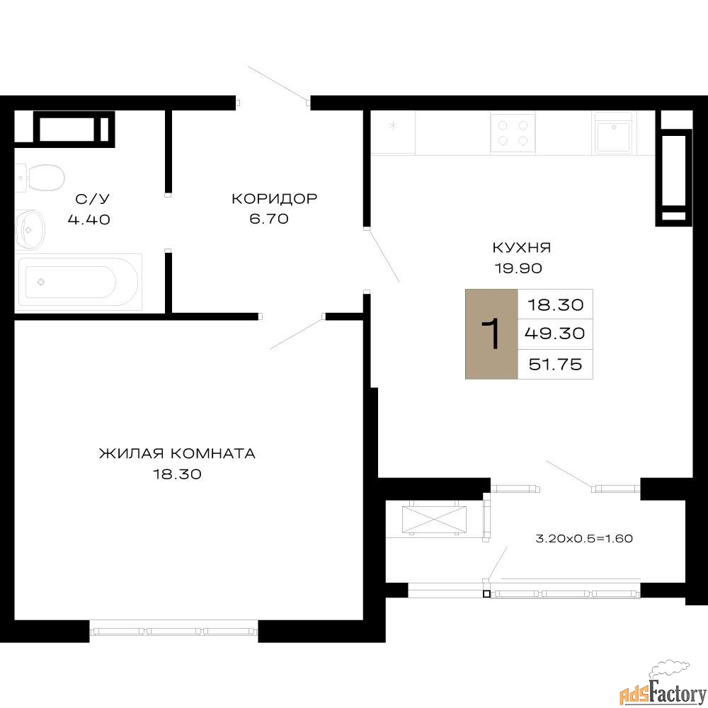 Жилая площадь 18.55 м2, кухня 20.71 м2, предчистовая отделка, комнаты изолированные.