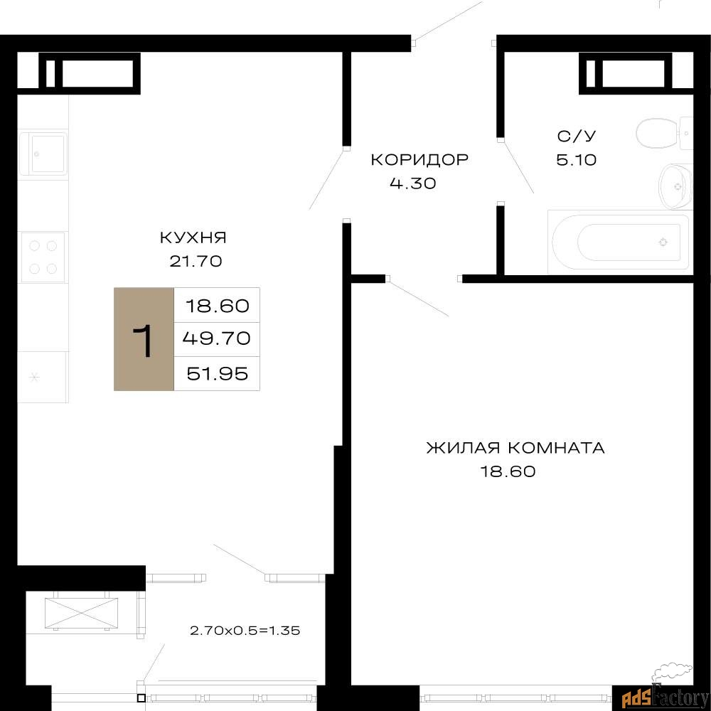 Жилая площадь 18.45 м2, кухня 22.05 м2, предчистовая отделка, комнаты изолированные.