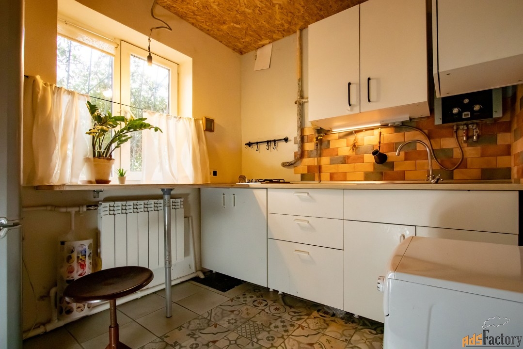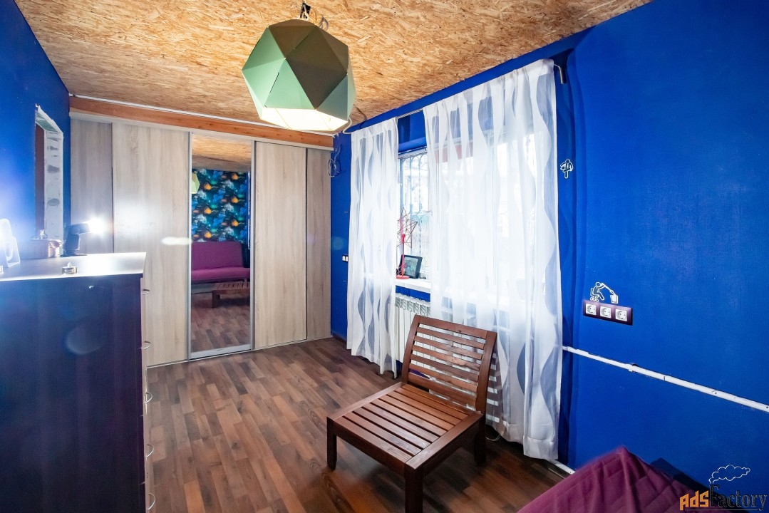 Теперь о самой квартире… Общая площадь квартиры 44,2 кв. м. Кухня имеет стандартные 6 кв. м., что присуще квартирам старого фонда, но благодаря перепланировке, сделанной собственником, квартира приобрела не только иной вид, но и более высокую степень удобства и комфорта проживания в ней. В квартире появился некоторый простор за счёт холла-гостиной, несмотря на небольшую площадь квартиры, две изолированные комнаты, а в одной из комнат вместо старых встроенных шкафов оборудована целая гардеробная, о необходимости которой в наше время не стоит говорить… Главное, что может привлечь особое внимание к данной квартире, так это ремонт, заменили буквально всё, начиная от снятых до кирпича стен и потолков, заканчивая полами, разобранными до бетонного перекрытия подвала, залита новая стяжка (имеются фотоматериалы ремонта). Поставлены новые окна, радиаторы отопления, полностью заменена электропроводка с электрооборудованием, заменены все трубы, установлены фильтры на воду, оборудованы тёплые полы, кухня и душевая комната в плитке, санузел разделён. Квартира на первом этаже, поэтому имеется небольшой оборудованный погреб, в котором сделана гидроизоляция. На сегодняшний день в квартире закончили все черновые работы, осталось наклеить обои по своему вкусу, установить натяжные потолки, межкомнатные двери и постелить ламинат в гостиной. Встроенная кухня остаётся. Перепланировка не узаконена. Квартира угловая, но очень тёплая. Балкона нет. Соседи тихие, спокойные. Документы в порядке, собственник один, маткапитал не использовался, имеется небольшое обременение банка ВТБ. Остальные вопросы по телефону. Торг при осмотре. Звоните!