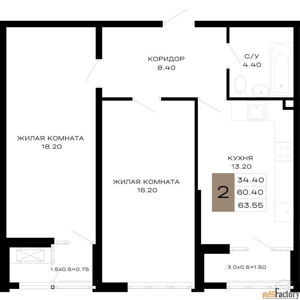 Жилая площадь 35.05 м2, кухня 13.09 м2, предчистовая отделка.