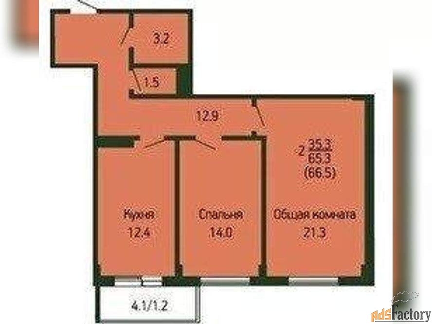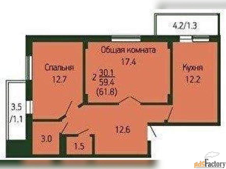 Жилая площадь 45.54 м2, кухня 13 кв. м, комнаты изолированные. Раздельных санузлов - 1, лоджий - 1.