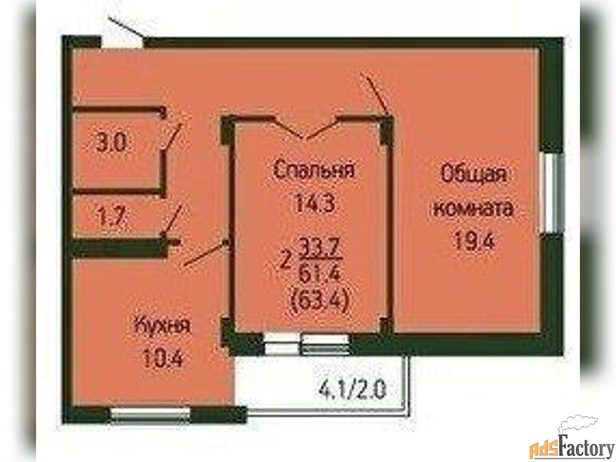 Квартира располагается на 2 этаже 9-этажного дома. [#6977314#]