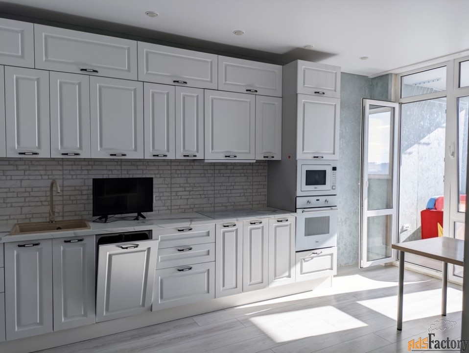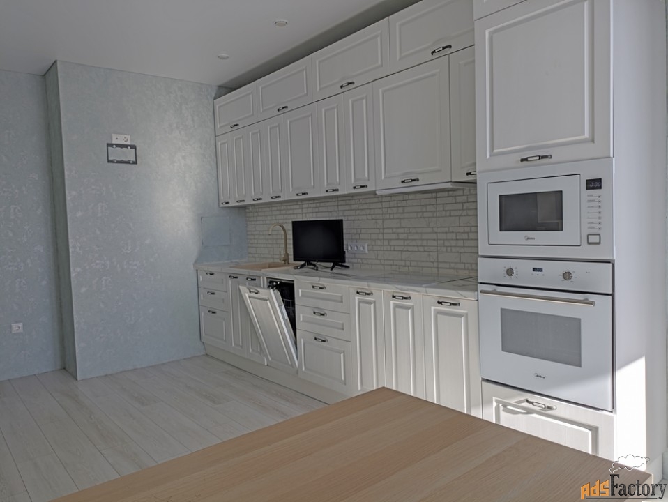 Остаётся мебель и техника: кухонный гарнитур с посудомоечной машиной, ТВ, бойлер, сплит-система, стиральная машина.