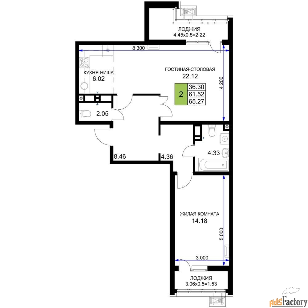 | Общая площадь (кв.м) | 65.27 |