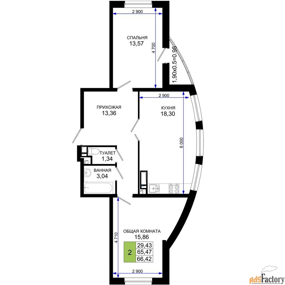 | Общая площадь (кв.м) | 66.42 |