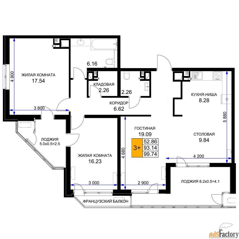 | Число комнат | 3 |