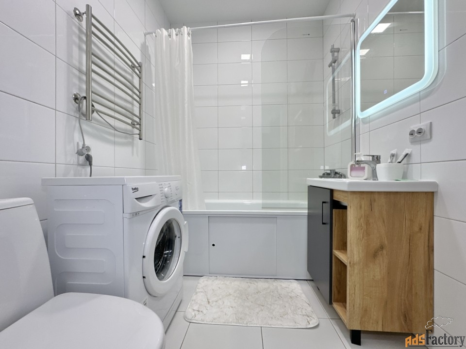 В квартире сделан свежий евроремонт, который создает атмосферу уюта и комфорта. Совмещенный санузел оборудован современной сантехникой. Наличие балкона добавляет дополнительное пространство, где можно обустроить зону отдыха. Дом оснащен как пассажирским, так и грузовым лифтами, поэтому можно без труда подниматься на свой этаж.