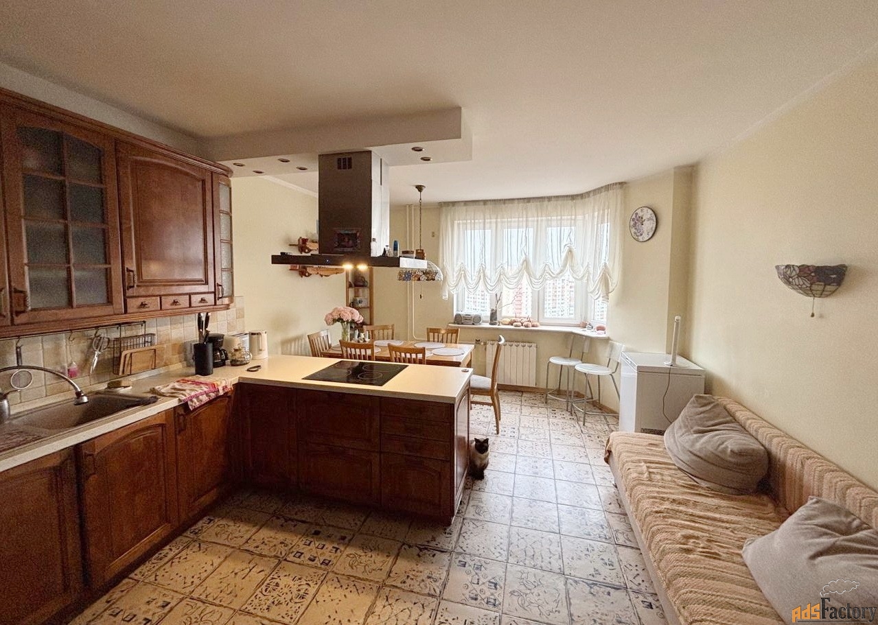 Для большой дружной семьи предлагается светлая, уютная и просторная квартира о. пл. – 131 кв. м., жил. пл. –69 кв. м. Это красивая, качественно отделанная квартира, где каждый квадратный сантиметр сделан с большой любовью и вкусом. В отделке использованы современные материалы. Два санузла, холл, из которого двери ведут в 3 изолированные комнаты (спальни) с окнами на разные стороны, при этом ни одно окно не выходит на проезжую часть. Гостиная комната соседствует с кухней (очень удобно во время больших праздников) . Кухня из массива дерева, встроенная дорогая техника в идеальном состоянии. Высокие потолки дают ощущение объема и пространства. Грамотное зонирование квартиры на гостевую и приватную зону сделают ваше проживание в квартире очень комфортным и уютным . Квартира продается со всей встроенной техникой и мебелью. Во дворе детская и спортивная площадки, уютный подъезд с консьержем. Микрорайон имеет великолепную инфраструктуру: в шаговой доступности магазины, аптеки, детские сады, школы, в пешей доступности от подъезда - платформа Пенягино, остановки общ. транспорта.Свободная продажа, один взрослый собственник, в собственности более 5 лет, полная стоимость в договоре. Звоните, уважаемые покупатели и коллеги, и приходите на просмотр. [#7642966#]