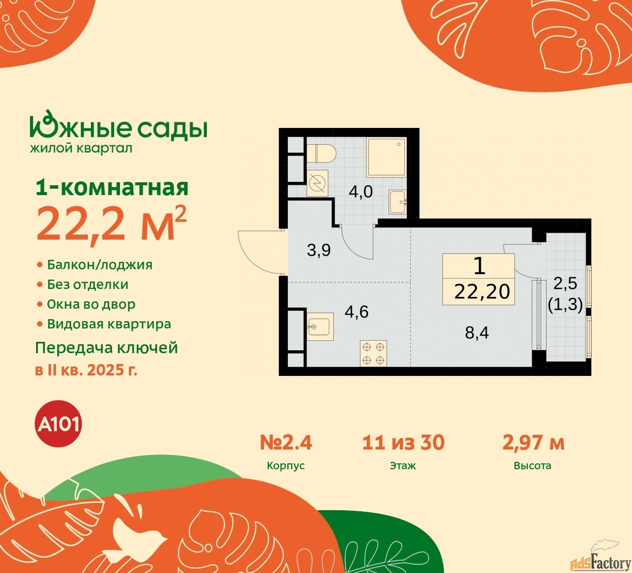 Новый проект «Южные сады» от застройщика «А101» будет построен на юге Москвы в пешей доступности от метро «Бунинская аллея». Дома будут возведены в окружении парков, а на территории комплекса будет выполнено благоустройство «Сады Средиземноморья» - тёплые оттенки и натуральные материалы покрытий, разнообразие плодовых и вечнозелёных деревьев, живые изгороди и эстетика средиземноморского сада. На первых этажах откроются магазины, кафе с летними террасами, фитнес-залы и салоны красоты.