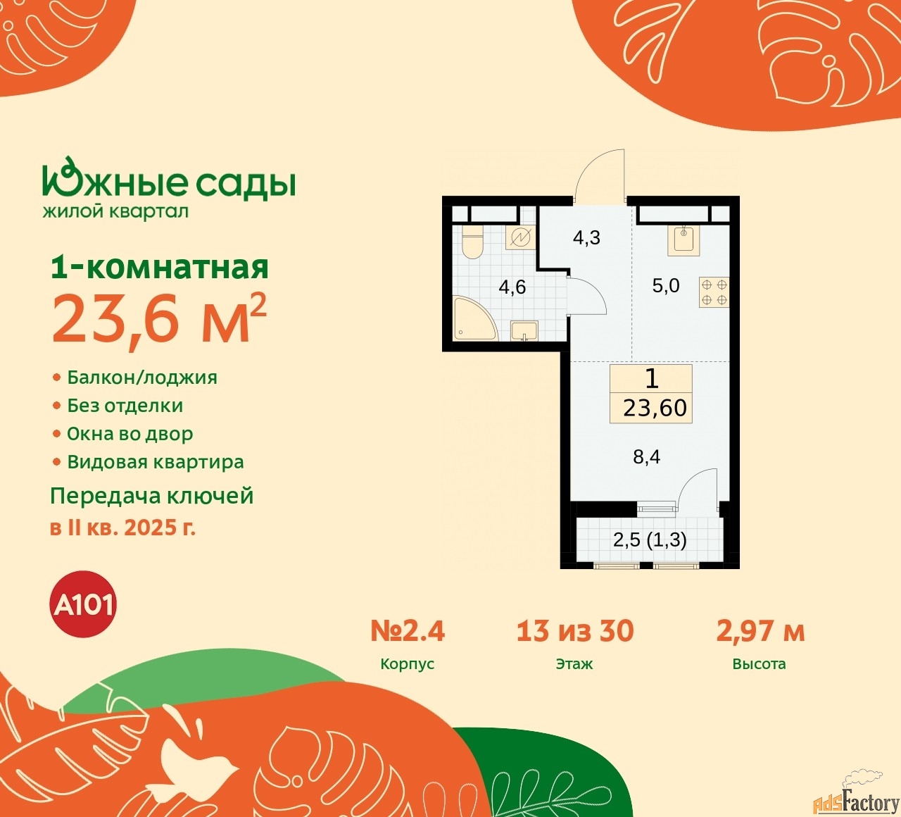 | Общая площадь (кв.м) | 23.6 |