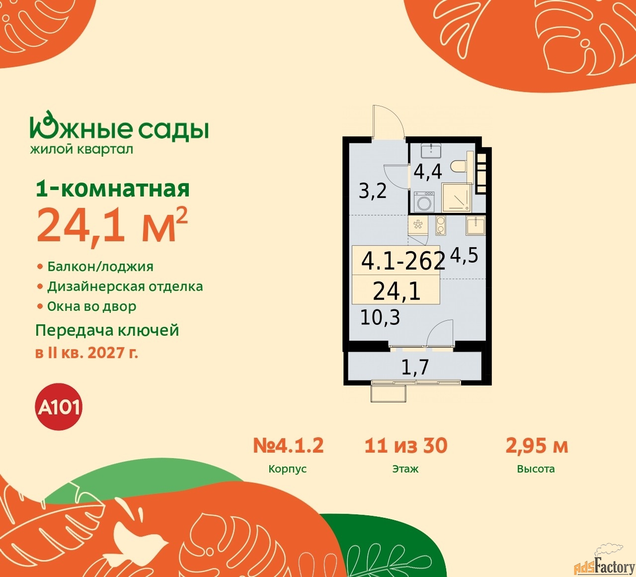 Артикул квартиры по базе застройщика 99К-4.1.2-262.