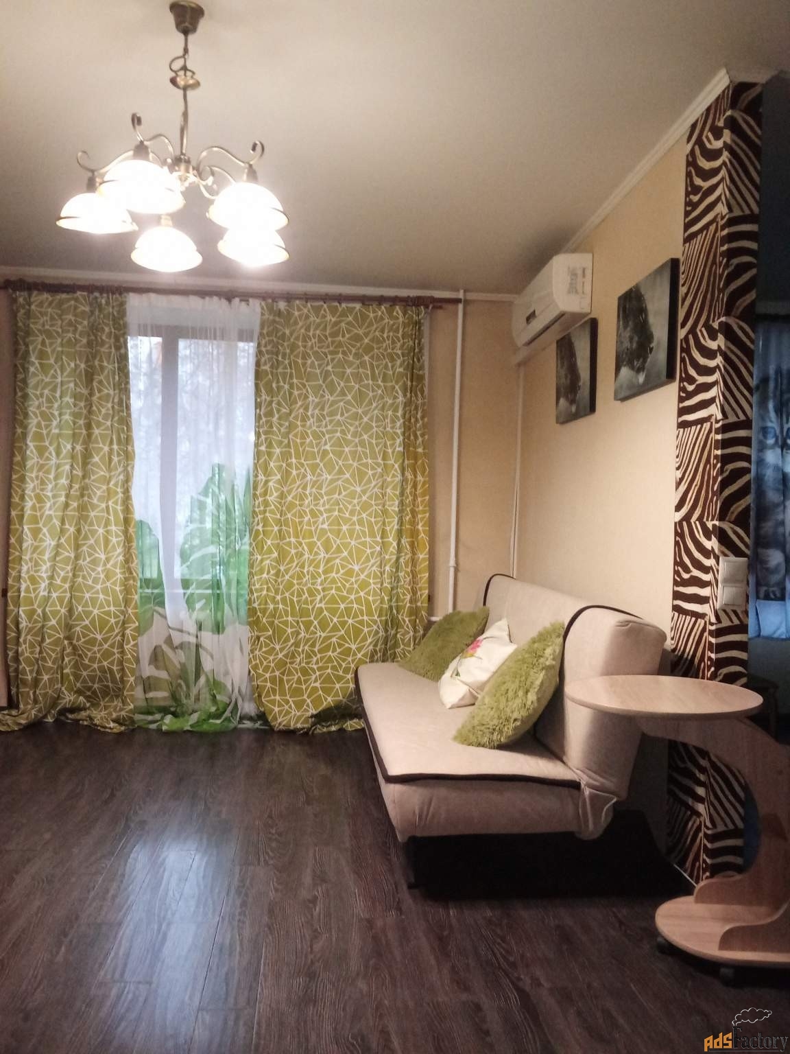 Жилая площадь 20 м2, кухня 6 кв.м, в квартире два спальных места, внутри евро ремонт, на кухне есть мебель, есть бытовая техника: стиральная машина, холодильник, телевизор, кондиционер, микроволновая печь, интернет. Раздельных санузлов нет, совмещенных санузлов 1, есть ванна.
