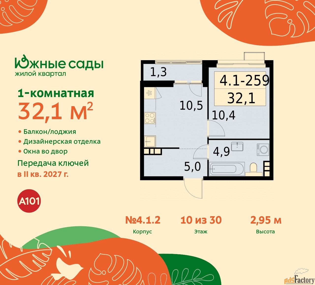Артикул квартиры по базе застройщика 99К-4.1.2-259.