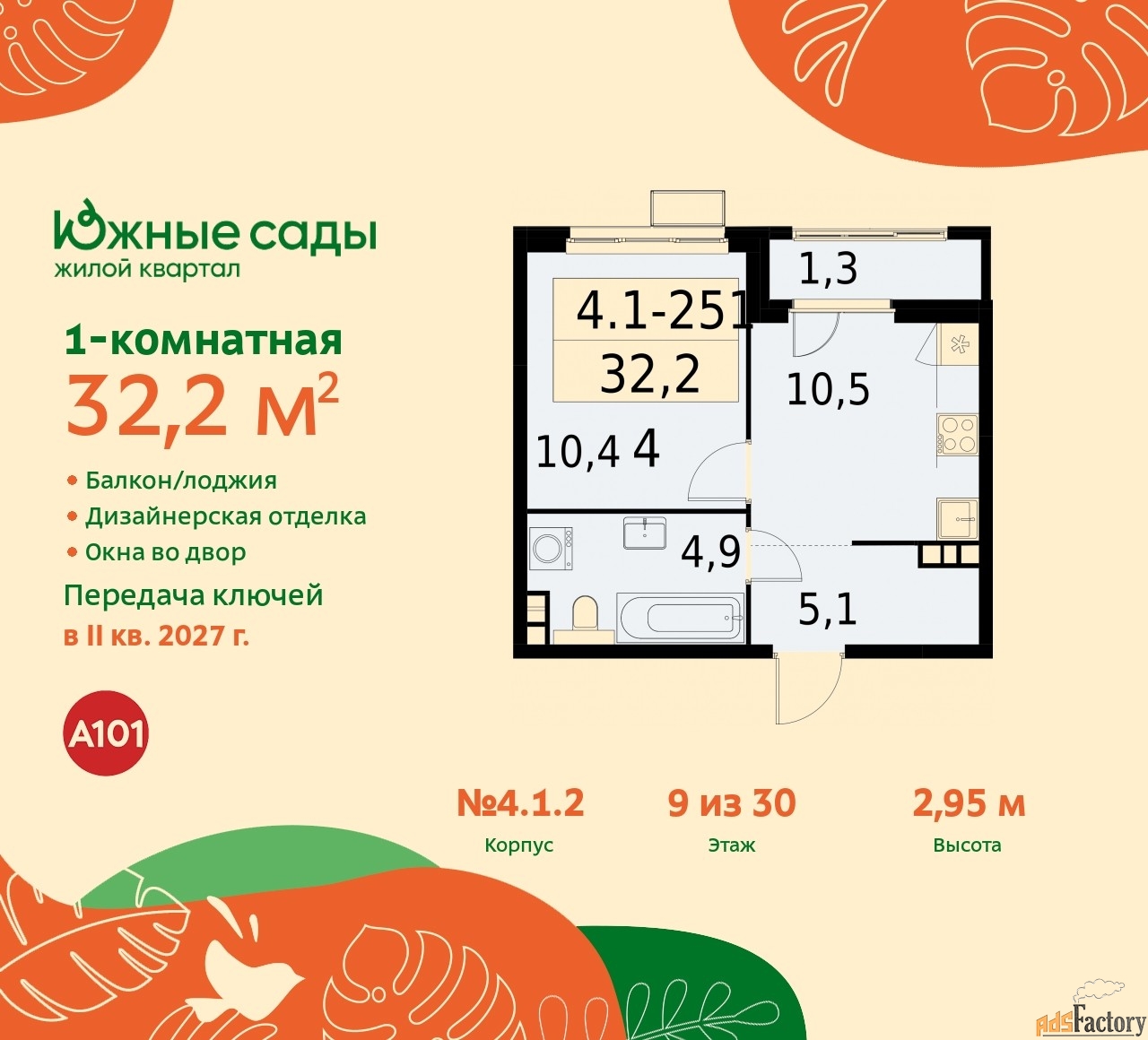 | Общая площадь (кв.м) | 32.2 |