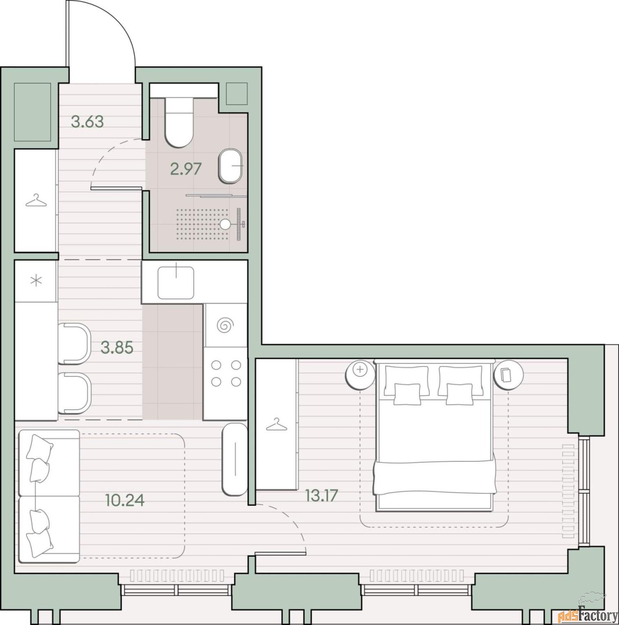 Жилая площадь 13.17 м2, кухня 3.85 м2, предчистовая отделка, комнаты изолированные.
