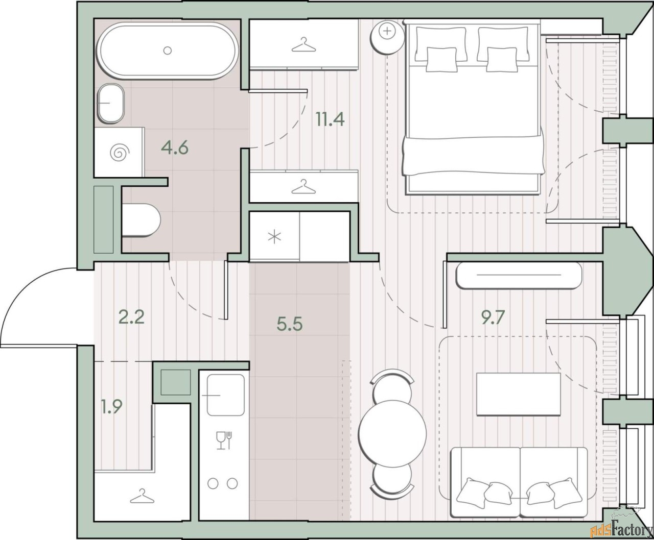 Жилая площадь 21.1 м2, кухня 5.5 м2, предчистовая отделка, комнаты изолированные.