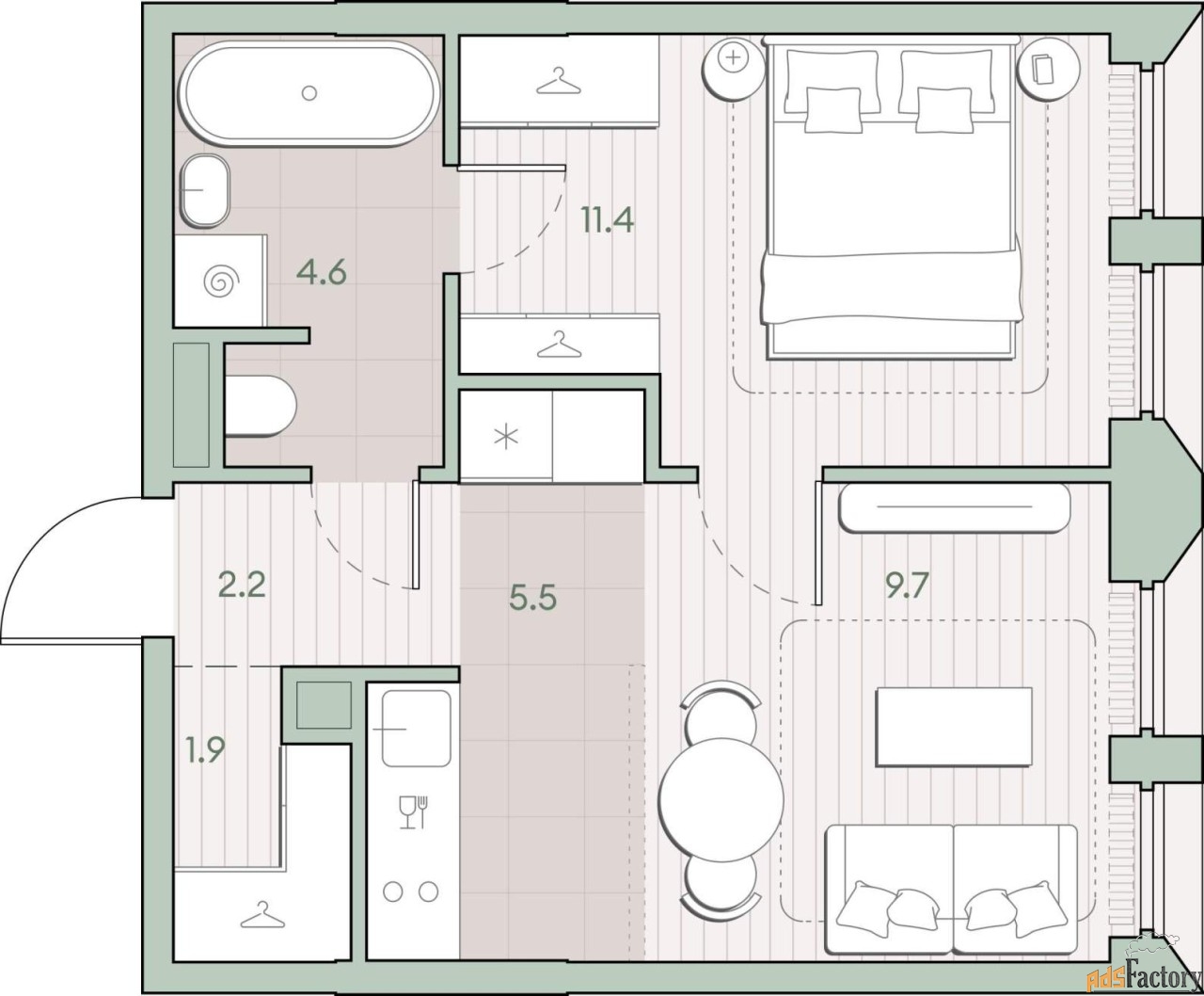 Жилая площадь 21.1 м2, кухня 5.5 м2, предчистовая отделка, комнаты изолированные.