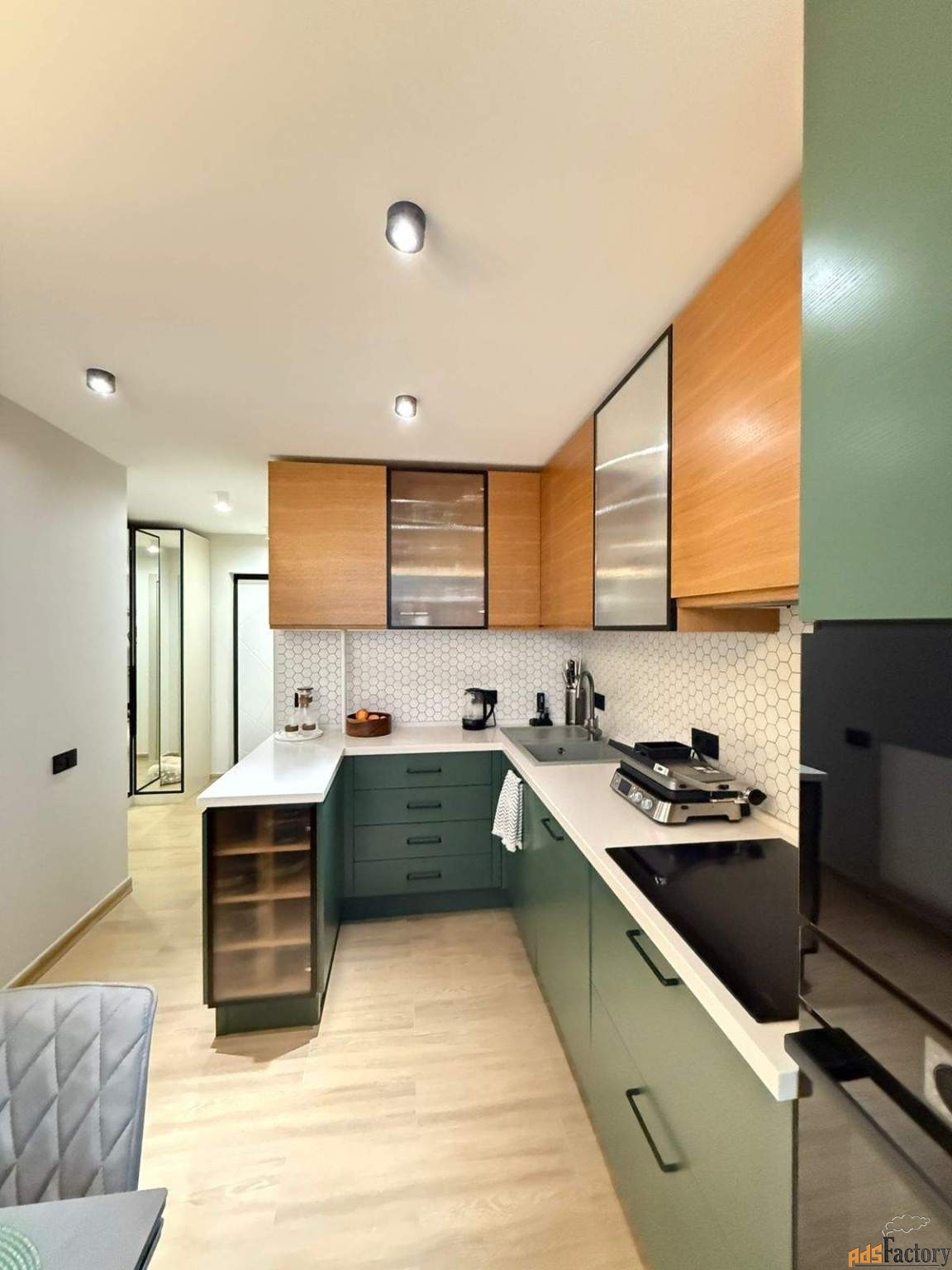 Особая гордость квартиры - большая лоджия с остеклением в пол. Это идеальное место, чтобы встречать утро за чашкой кофе или отдыхать вечером с видом на город. Даже в пасмурный день здесь много естественного света и ощущение простора.