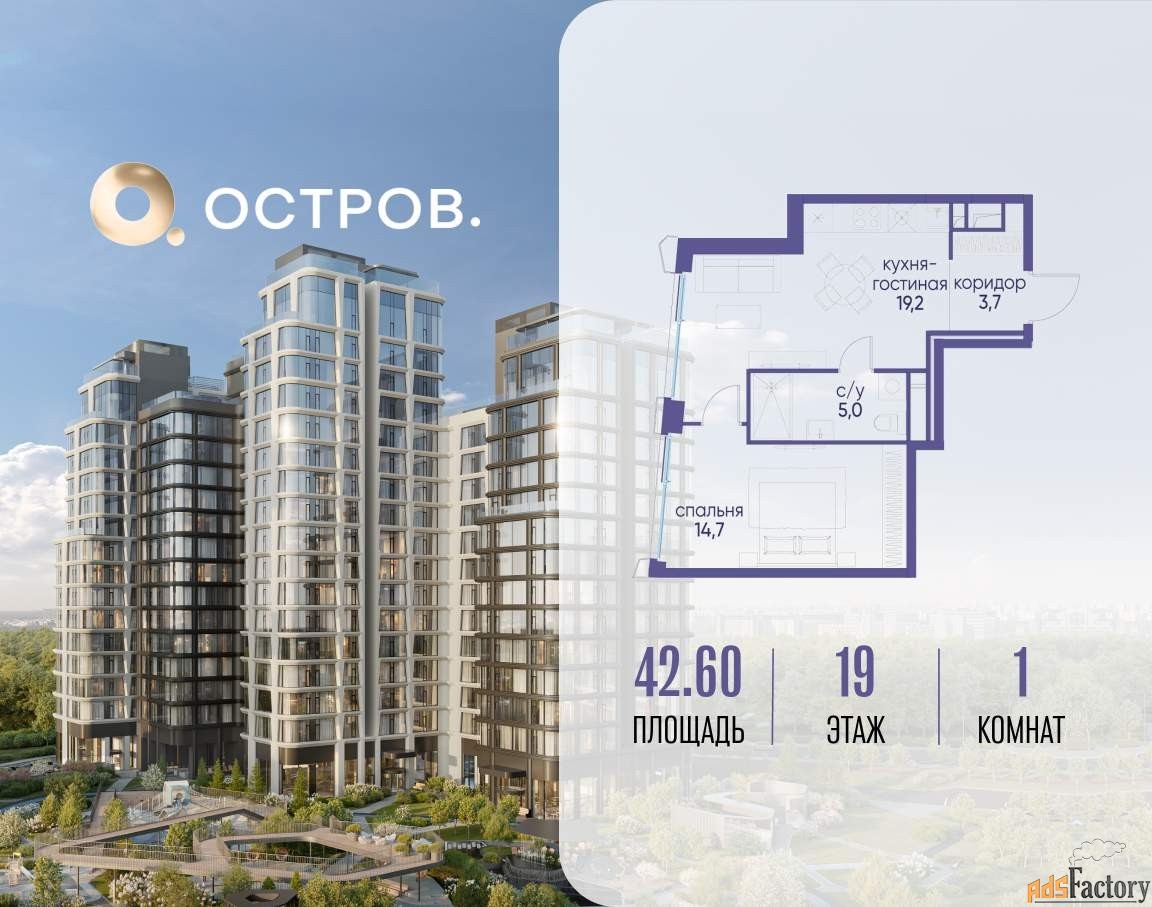 ОСТРОВ от Донстрой - жилой комплекс на западе Москвы, в Мневниковской пойме. Уникальное преимущество комплекса - в том, что он обособлен от города рекой и природным парком (650 га) . Благодаря природному окружению эта территория имеет лучший экологический рейтинг в столице. Кварталы ОСТРОВА объединены ландшафтным дизайном в единое пространство - с набережными и Центральным бульваром. На ОСТРОВЕ любые объекты, необходимые для полноценной жизни и отдыха, находятся на расстоянии 15-минутной прогулки. Торговый центр и супермаркеты, кафе и рестораны, фитнес, салоны красоты, школы и детские сады. А также крупнейший в Москве спортивный кластер. [#7671545#]