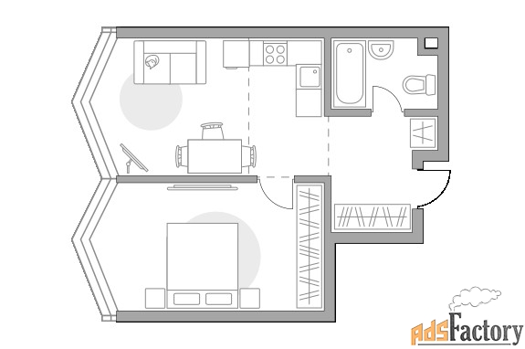 Жилая площадь 15.85 м2, кухня 17.2 м2, черновая отделка, комнаты изолированные, окна выходят на улицу.