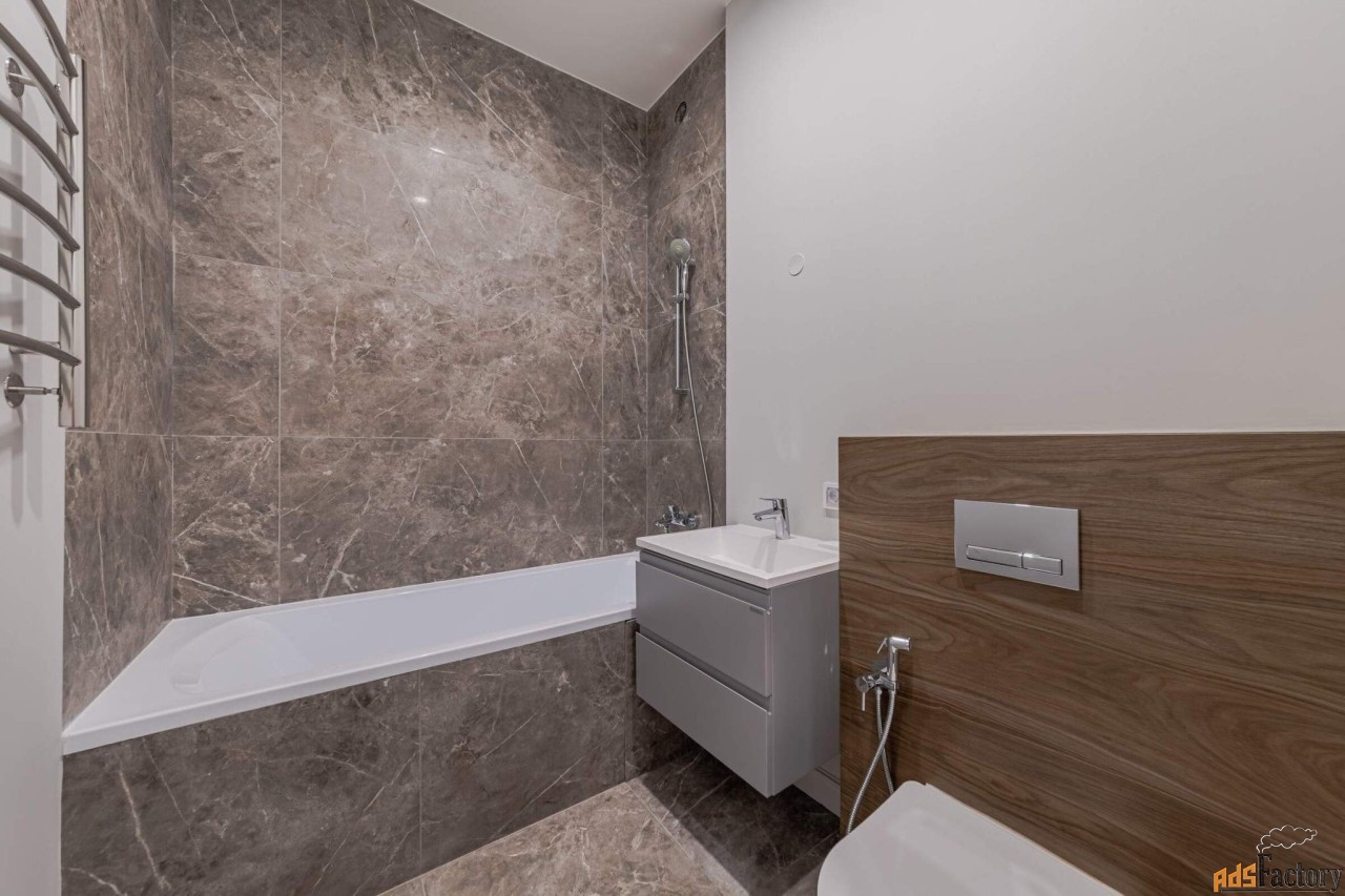 Общая площадь квартиры - 45.5 кв.м. В квартире выполнена премиальная отделка в неоклассическом стиле.