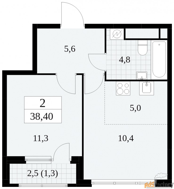 | Общая площадь (кв.м) | 38.4 |