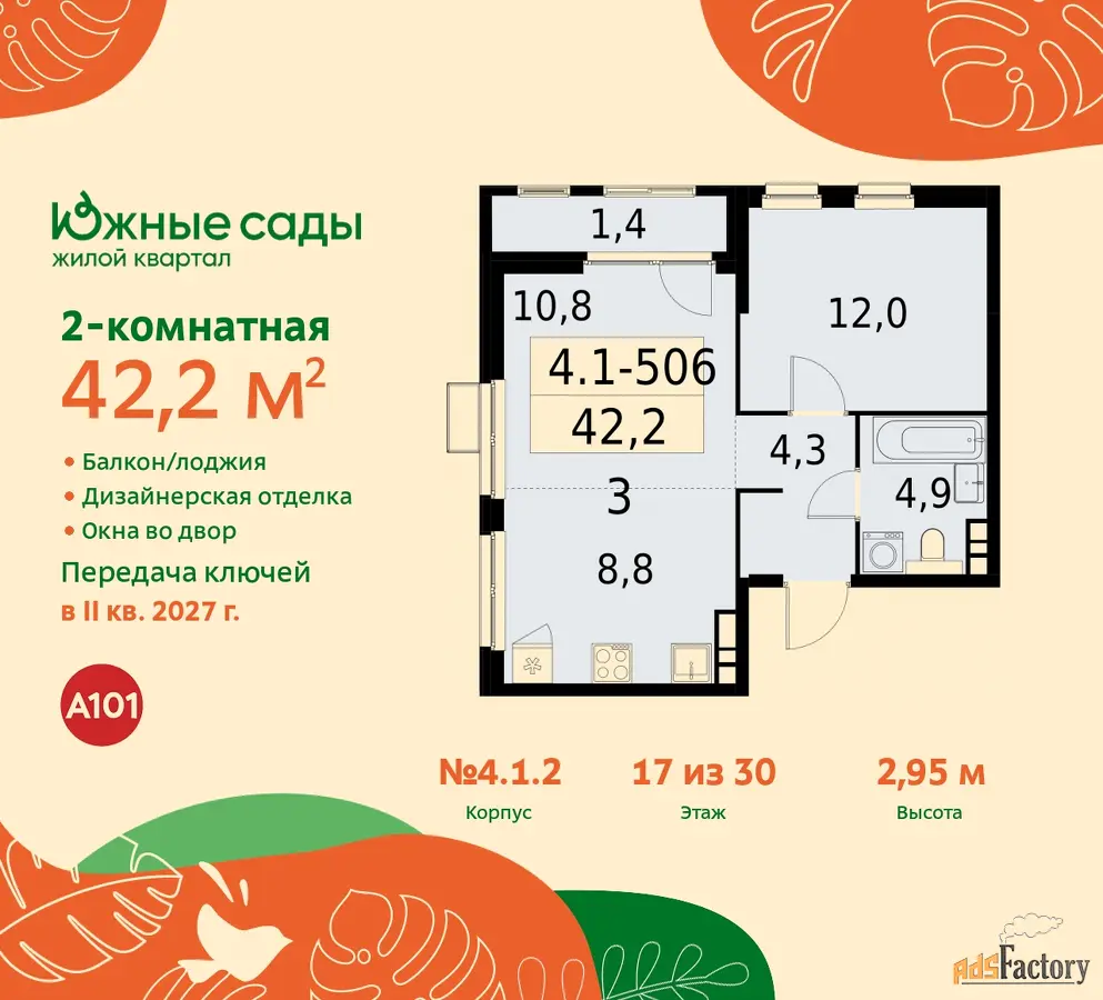 Артикул квартиры по базе застройщика 99К-4.1.2-506.