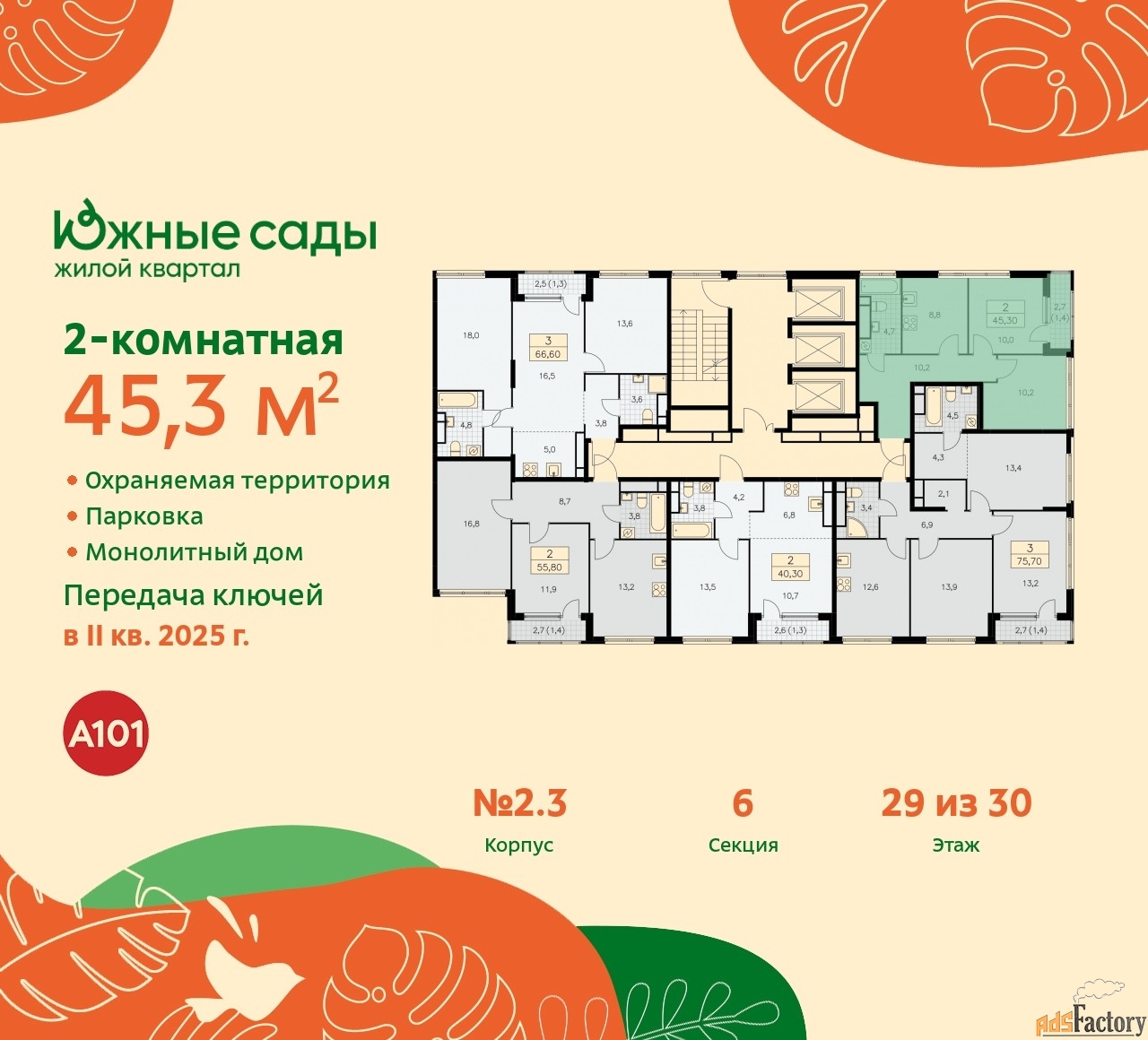 Новый проект «Южные сады» от застройщика «А101» будет построен на юге Москвы в пешей доступности от метро «Бунинская аллея». Дома будут возведены в окружении парков, а на территории комплекса будет выполнено благоустройство «Сады Средиземноморья» - тёплые оттенки и натуральные материалы покрытий, разнообразие плодовых и вечнозелёных деревьев, живые изгороди и эстетика средиземноморского сада. На первых этажах откроются магазины, кафе с летними террасами, фитнес-залы и салоны красоты.
