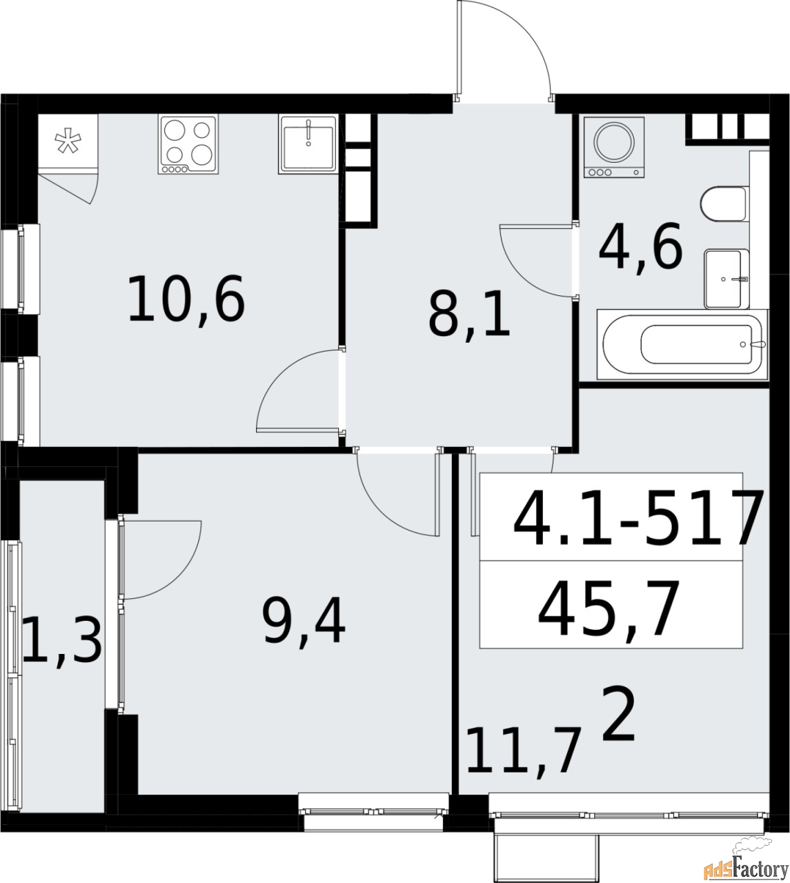 | Общая площадь (кв.м) | 45.7 |