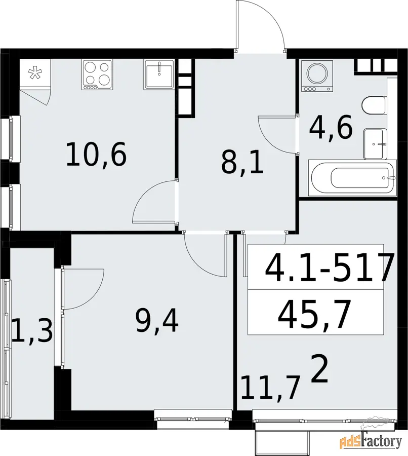 Корпус 4.1.2 в ЖК «Южные сады», в котором находится квартира, будет построен в 2027 году. Дом монолитный, в корпусе 4 подъезда, есть 1 пассажирский и 1 грузовой лифт.