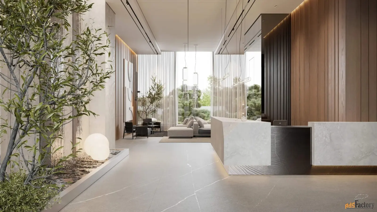 Две 16-этажных секции дома соединит лобби с дизайнерской отделкой. Оно станет стильным общественным пространством и главным входом для жителей, также ведущим в скрытый от посторонних глаз приватный внутренний двор.