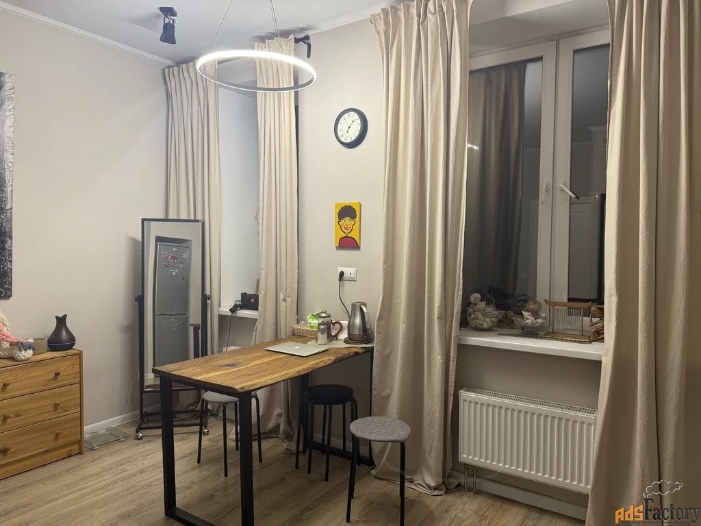 Просторная кухня- гостиная, 2 сан узла, спальня с гардеробной. Полы с подогревом, окна на две стороны.