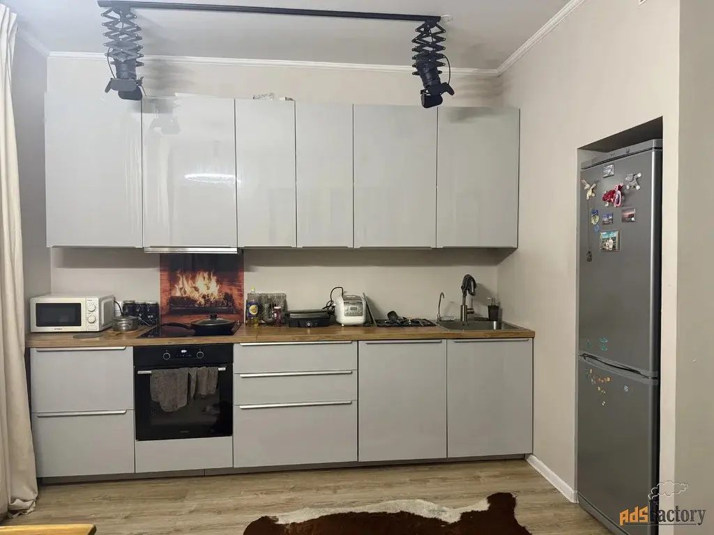 Просторная кухня- гостиная, 2 сан узла, спальня с гардеробной. Полы с подогревом, окна на две стороны.