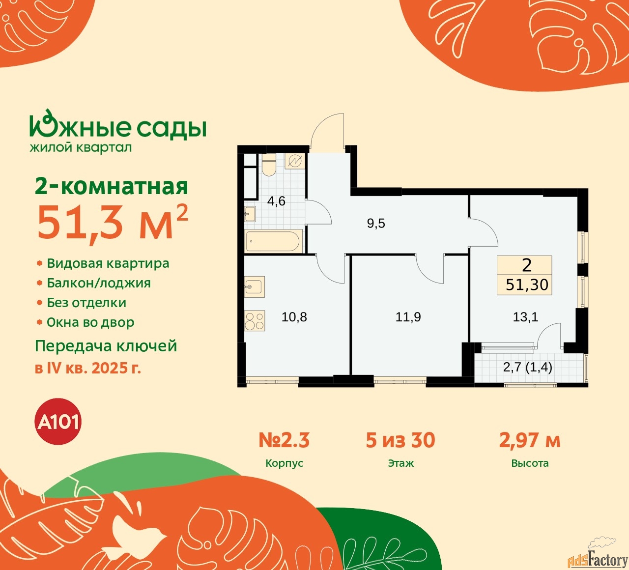 Артикул квартиры по базе застройщика 99К-2.3-653.