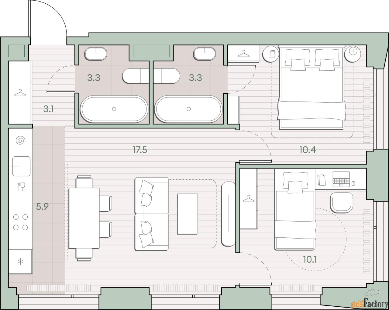 | Площадь кухни (кв.м) | 5.9 |