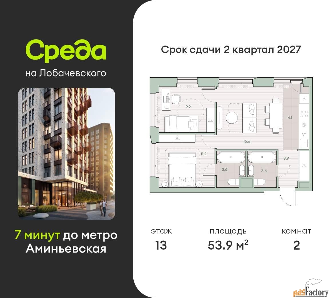 Застройщик - Среда, сдача дома - II квартал 2027 года, высота потолков 2.92 м.