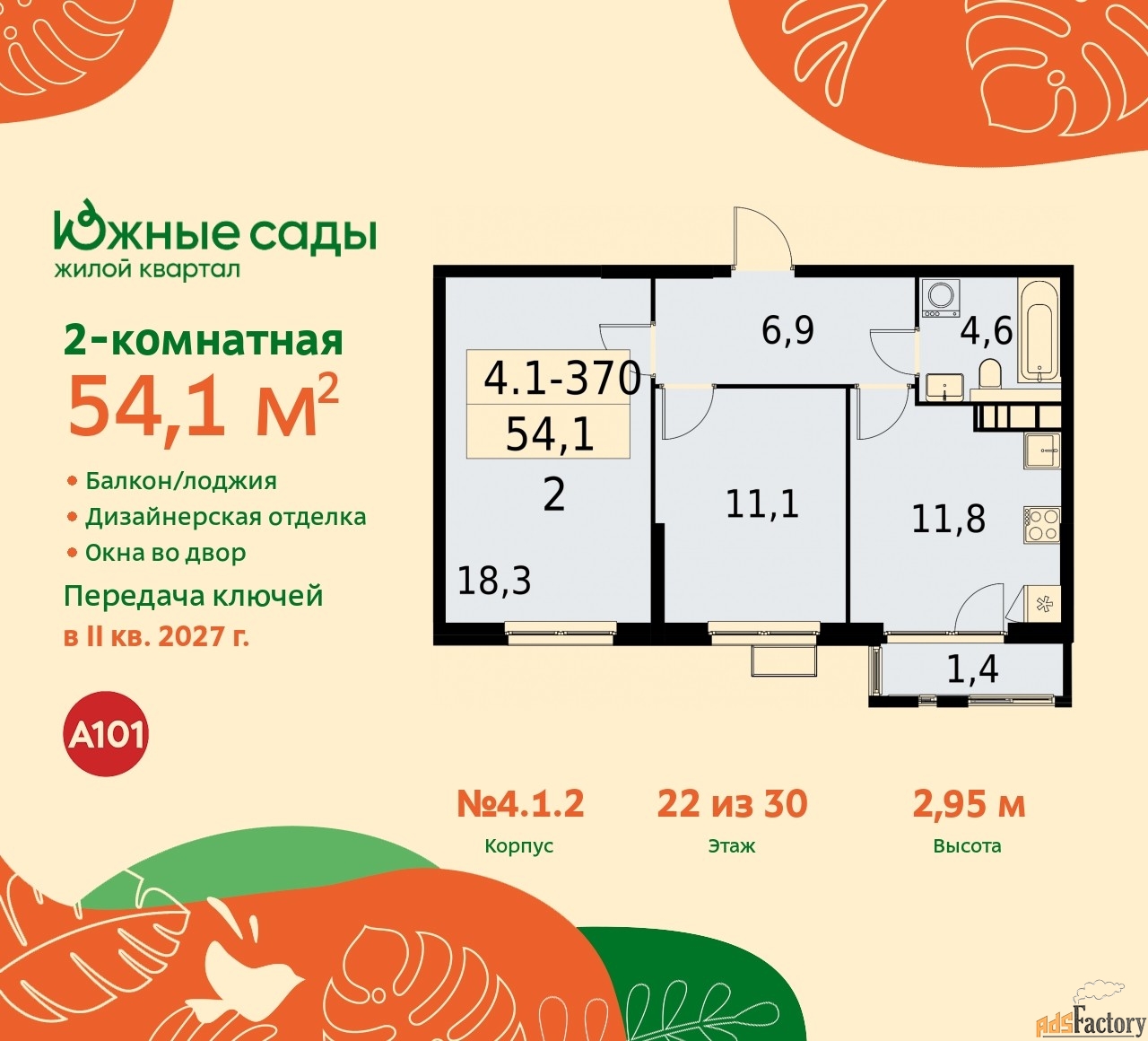 Артикул квартиры по базе застройщика 99К-4.1.2-370.