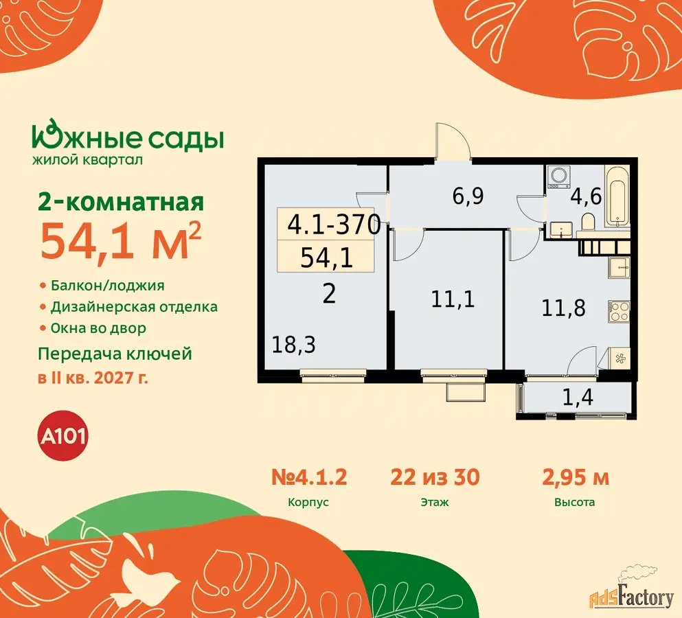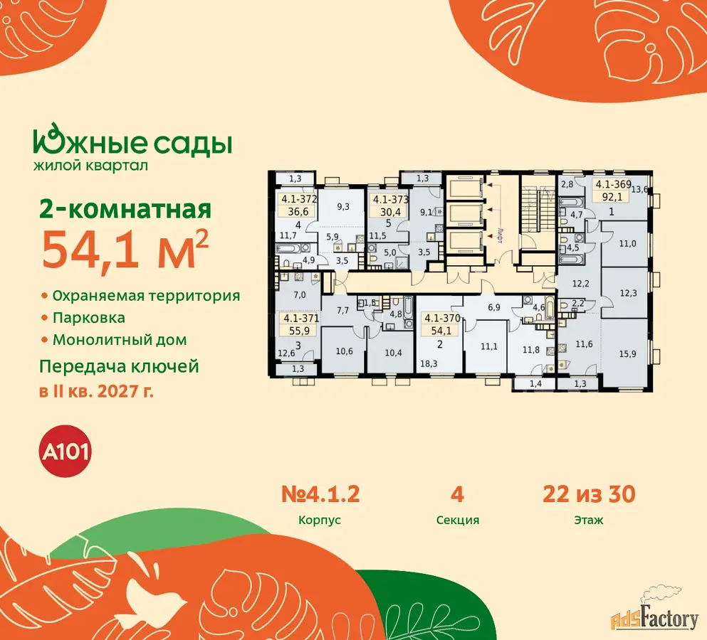 Артикул квартиры по базе застройщика 99К-4.1.2-370.