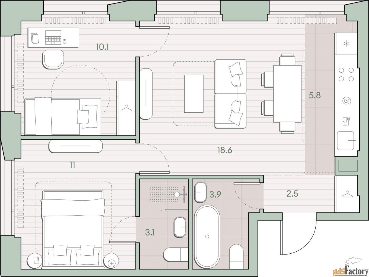 | Площадь кухни (кв.м) | 5.8 |