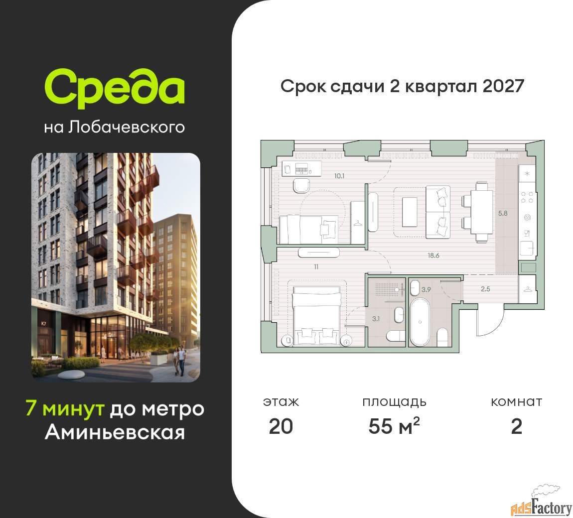 Застройщик - Среда, сдача дома - II квартал 2027 года, высота потолков 2.92 м.
