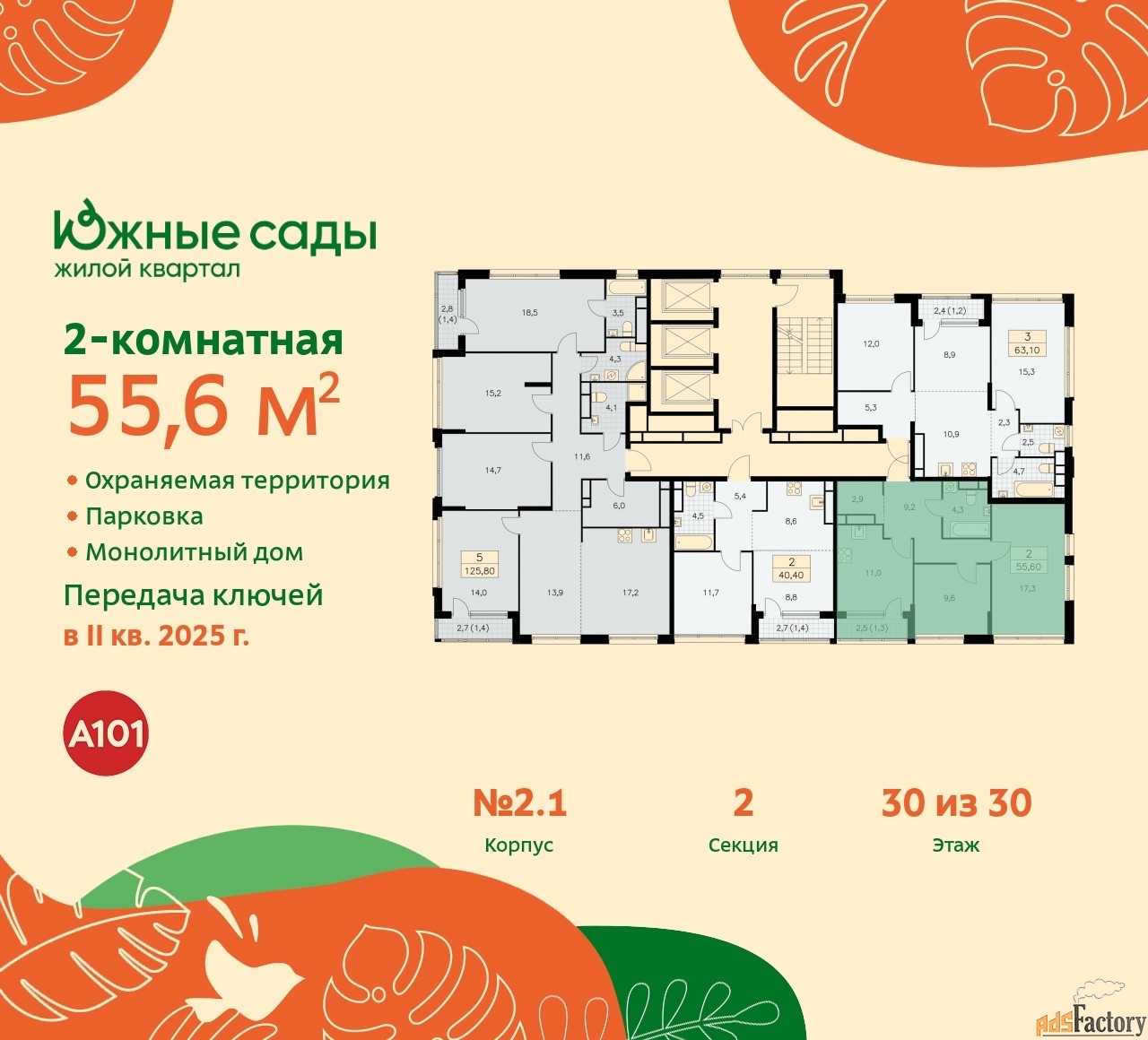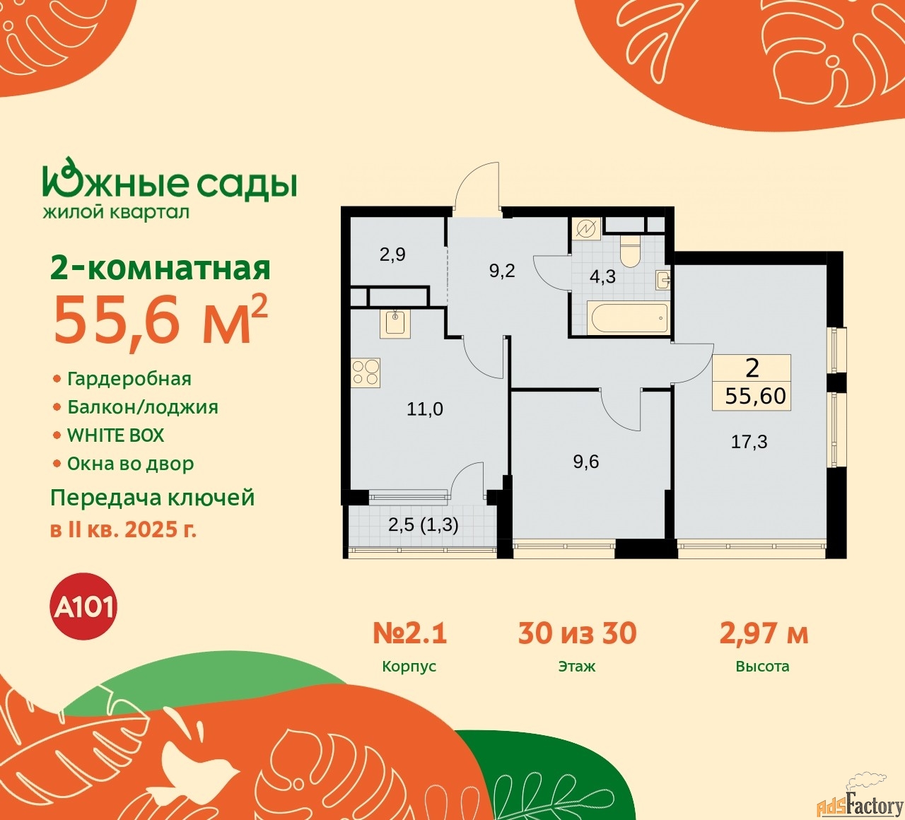 | Общая площадь (кв.м) | 55.6 |