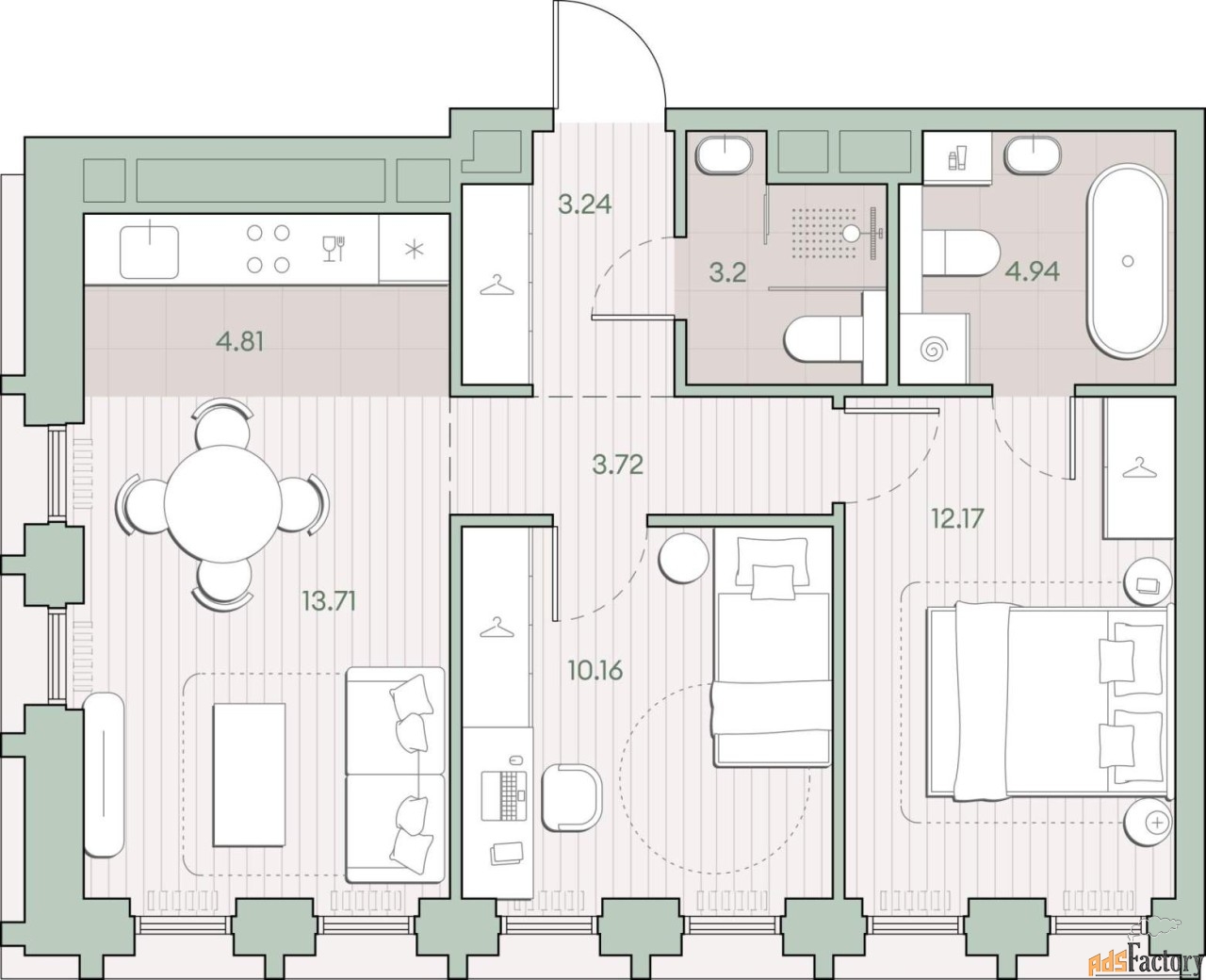 | Общая площадь (кв.м) | 55.95 |